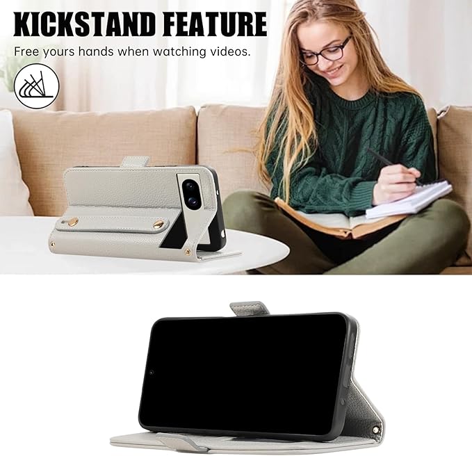 手帳型ケース Google Pixel 8a と互換性のある おしゃれ グーグル ピクセル8a 用の スマホショルダー 肩掛け 携帯ケース 片手操作 グリップループ付 落下防止 サイドマグネット Pixel8A 向けの 財布型 カバー カードポケット付き ピクセル 8A に適合する カバー 全面保護 カード収納 横置きスタンド機能 PUレザー ベージュ | KAZESHOP