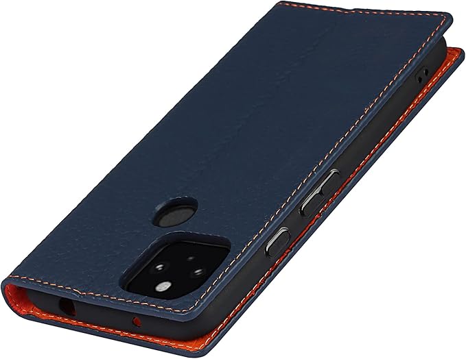 Eastwave for Google Pixel 5A 5G ケース 本革 本革 for pixel5a 5g 手帳型ケース 財布型 カバー 手帳式 本革 柔らかい 本皮 スプラットホール付き スプラット同梱 内蔵マグネットカード収納 横置きスタンド機能 - ネイビー | KAZESHOP