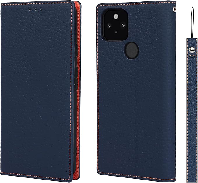 for Google Pixel 5A 5G ケース 本革 本革 for pixel5a 5g 手帳型ケース 財布型 カバー 手帳式 本革 柔らかい 本皮 スプラットホール付き スプラット同梱 内蔵マグネットカード収納 横置きスタンド機能 - ネイビー