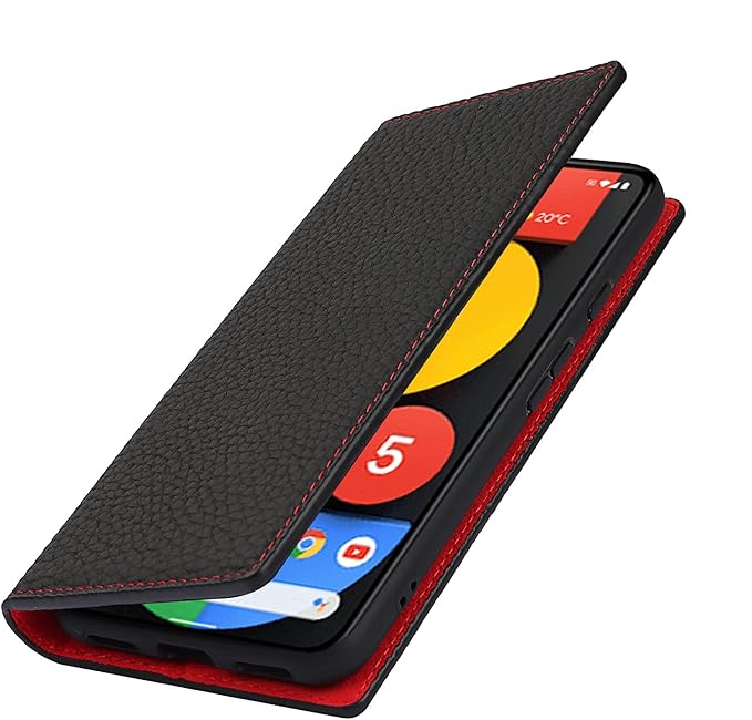 Eastwave for Google Pixel 5A 5G ケース 本革 本革 for pixel5a 5g 手帳型ケース 財布型 カバー 手帳式 本革 柔らかい 本皮 スプラットホール付き スプラット同梱 内蔵マグネットカード収納 横置きスタンド機能 - ブラック | KAZESHOP
