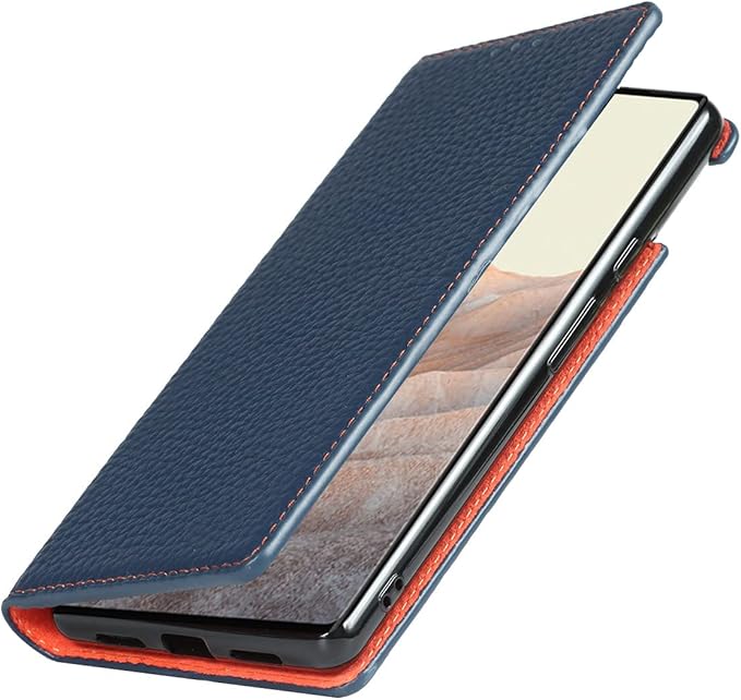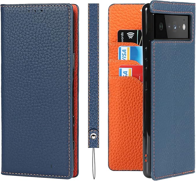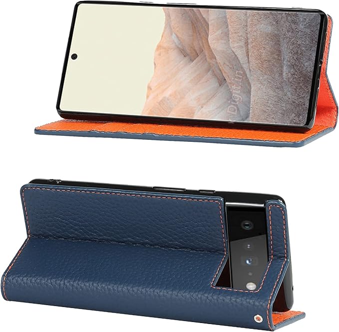 Eastwave for Google Pixel 6 ケース 本革 本革 for pixel6 手帳型ケース 財布型 カバー 手帳式 本革 柔らかい 本皮 スプラットホール付き スプラット同梱 内蔵マグネットカード収納 横置きスタンド機能 - ネイビー | KAZESHOP