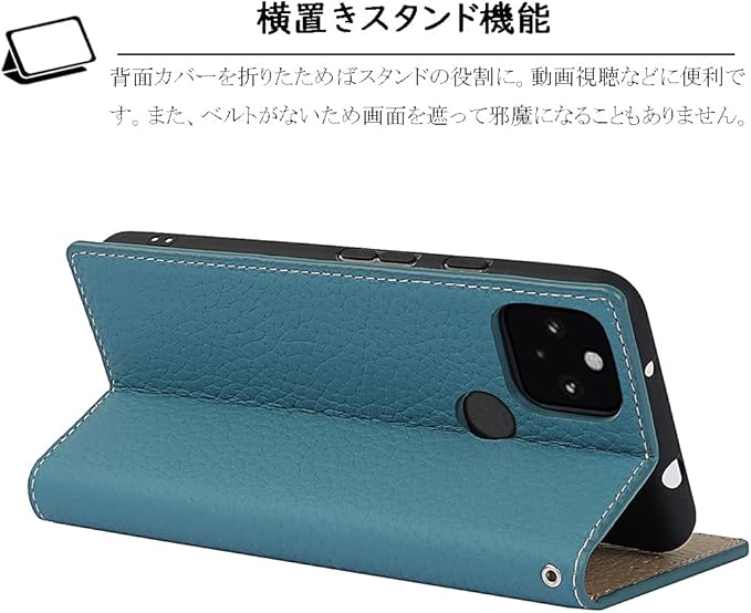 Elick Google Pixel 5a (5G) 適用 ケース 手帳型 高級牛革 グーグル ピクセル 5a 5G ケース 手帳型 本革 マグネット式 スタンド機能 カード収納 ストラップ付き Google Pixel 5a 手帳型 ケース カバー ターコイズ | KAZESHOP