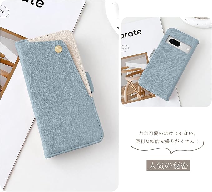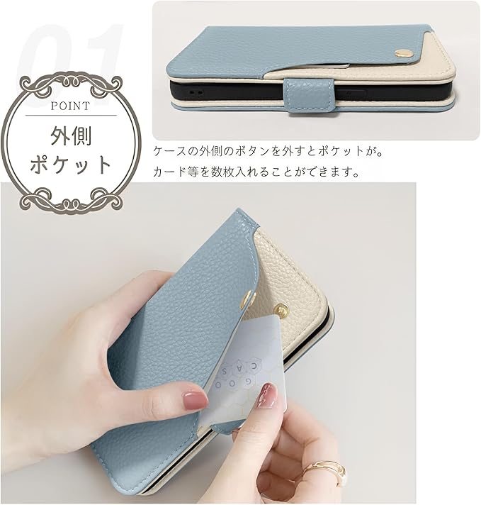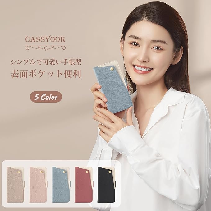 【人気の理由】❶デザイン&実用性。シンプルながらデザイン性があって可愛い。表面ポケットに交通系ICカードを入れられます、開け閉めもしやすいです。❷背面だけでなく、画面を覆っているため、画面から直接地面に落ちる場合は、スマホの画面を保護してくれるので安心といったイメージがあります。カバーの面積が広くなり、カバーの外側や内側を有効利用できる点も手帳型の魅力の1つでしょう。❸サイドマグネット式なので、磁石はケースの側面にあり、カード面に直接接しないので、磁気カード類が壊れる心配がありません。両開きのマグネットベルトタイプで、カードを入れてもペラペラしなくて、ちゃんと締まることができ、鞄の中でカバーが開きません、ポケットの中やバッグの中での誤操作を防止。