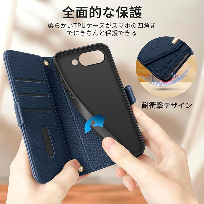 【高級PUレザー】グーグル ピクセル 9aに適合する財布型ケース外装はPUレザー、内装は衝撃吸収性の高いTPU素材を使用し、各コーナーの内側には精密なデザインを施し、仕上がりは丁寧でスタイリッシュな仕上がりになっています。指紋や皮脂が簡単に落とせるので、洗う必要がなく、濡れたペーパータオルで拭くだけでOKです。
