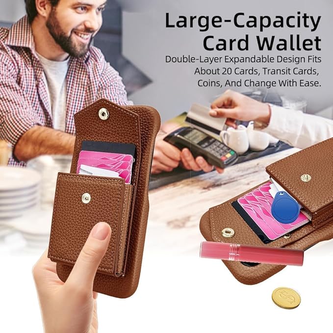 【大容量カードウォレットデザイン】二層拡張デザインで約20枚のカード、交通カード、コイン、小銭を簡単に収納。