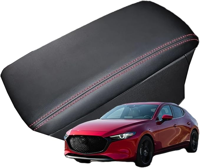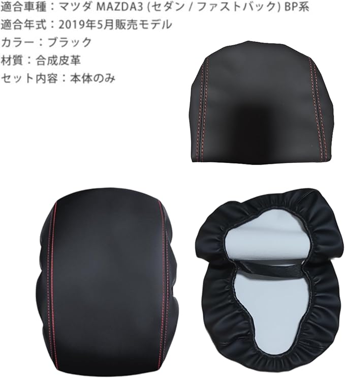 マツダ3 BP系 アームレストカバー コンソールボックスカバー 保護カバー UP&キズ防止に!レザータイプ (黒レザー 赤ステッチ) 内装パーツ アクセサリー 傷・汚れ防止 耐久性・撥水性 取り付け簡単 車種専用設計 Mazda3 ファストバック [並行輸入品] | KAZESHOP
