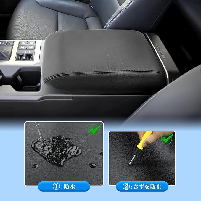 【日本車種専用設計・全面保護】弊社のアームレストカバーはランドクルーザー250の車種に設計でぴったりとフィットし、底部のゴムバンドの滑り止め設計により、使用中にもアームレストカバーが滑らず、運転の安全性を確保します。 同時に、防水性と防塵性により、アームレストボックスの表面を直射日光から保護し、ペットがアームレストボックスを傷つけるのを防ぎます。