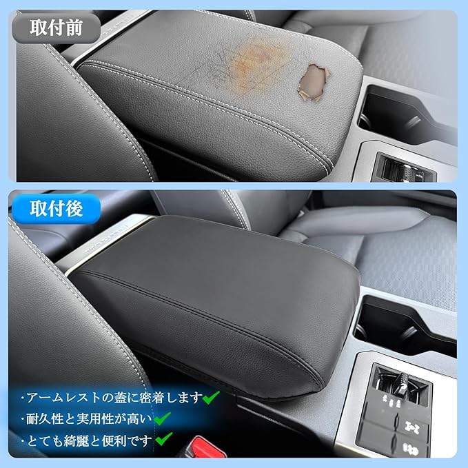 【耐摩擦・通気性素材】当社のランクル250 アームレストカバーは、弾力性と耐摩耗性に優れたマイクロファイバーレザーを素材として作られており、防水加工が施されています。日常の摩耗や傷に耐えます。 タイトなステッチと独特の質感デザインと相まって、車内の美しさを向上させるだけでなく、アームレストボックスを摩耗や汗から保護し、細菌汚染を効果的に保護および防止します。 マイクロファイバーレザーは軽量、高強度、耐高温性、耐食性などの特徴を持ち、高温下でも寸法が安定し、変形しません。