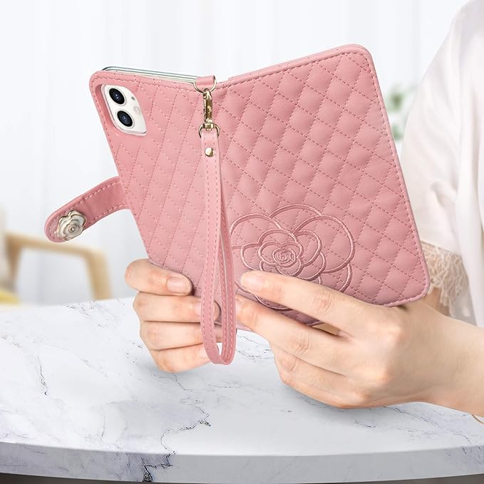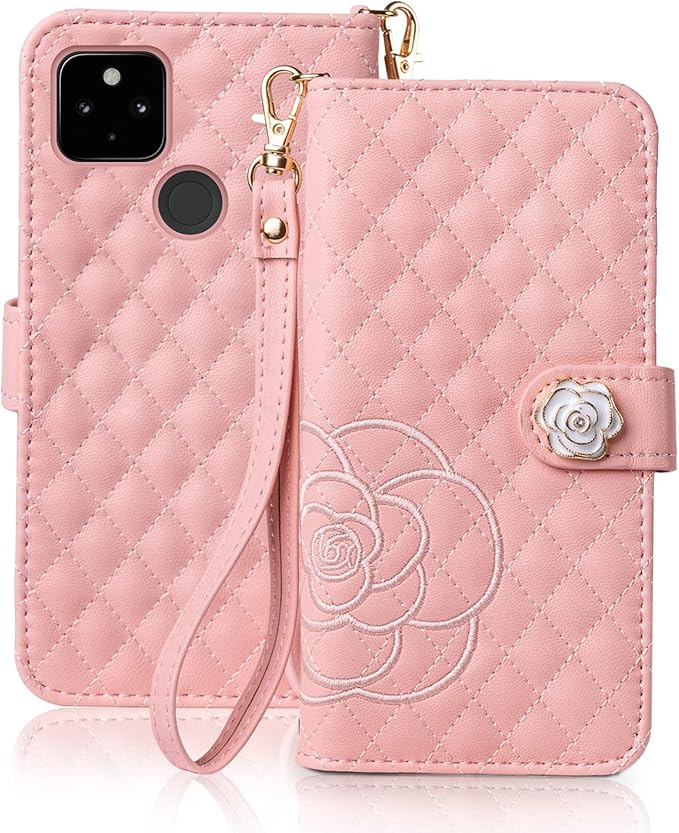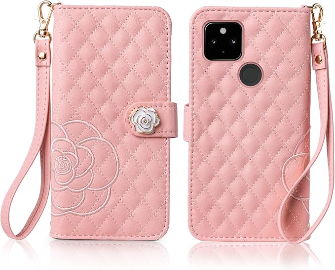 SZJAMIE Google Pixel 4a 5G ケース 手帳型 Pixel 4a 5G 手帳型ケース 薔薇刺繍 おしゃれ カメリア花柄 グーグル ピクセル 4a 5G スマホケース 女性向け 上品 高級レザー 軽量 可愛い 手触り 耐衝撃 カード収納 財布型 横置きスタンド機能 全面保護 ストラップホール付き (Google Pixel 4a 5G 対応, ピンク) | KAZESHOP