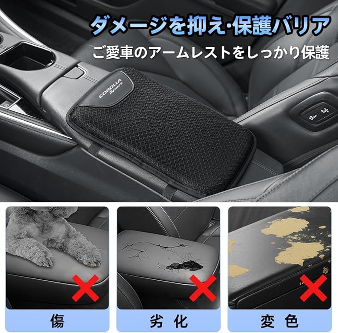 カローラ スポーツ 適用 アームレストカバー 車 厚型 保護カバー COROLLA Sport 210系 219系 対応 引っかき傷対策 アームレストクッション アイスシルク生地 通気性 カー アームレストパッド 肘置き 疲労減少 コンソールボックスパッド 滑り止め 簡単取付(カローラ スポーツ 適用,1個) | KAZESHOP