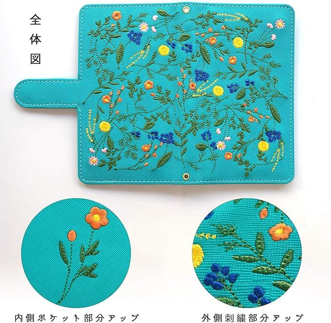 Google pixel 4a 5G 専用 ケース カバー ボタニカル 花 刺繍 手帳型ケース 手帳型カバー pixel4a5G pixel4a5Gケース pixel4a5Gカバー pixel4a5G手帳型ケース pixel4a5G手帳型カバー スマホケース スマホカバー ピクセル 花柄 ターコイズ | KAZESHOP