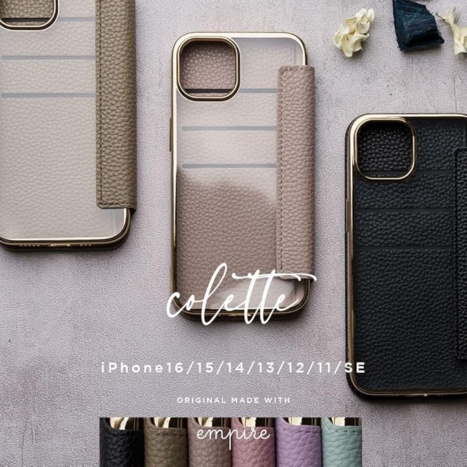 ここでしか手に入らないempire(エンパイア)オリジナルデザイン。手帳型iPhoneケース「Colette(コレット)」は、シンプルでありながら大人かわいいデザインが魅力的です。このケースは、iPhone16からiPhoneSE(第2世代)、Google Pixel、Xperia、OPPO、AQUOSシリーズまでの幅広いモデルに対応しており、日常のスタイルを格上げしてくれます。特に注目すべきは、その洗練された色合いと質感です。優れた収納機能も備えており、カードスロットが内蔵されているため、大切なカードをスマートに持ち運べます。 ゴールドのアクセントが施されたフレームは、耐久性に優れ、端末をしっかりと保護します。また、フリップカバーは、スクリーンを常にクリーンに保ちつつ、操作性を損ないません。ビジネスシーンからカジュアルな日常使いまで、どんな場面でも自信を持って使用できるアイテムです。美しさと機能性を兼ね備えた「Colette」で、あなたのスマホをより一層特別なものにしましょう。 <ご注意> ※こちらの商品はフタが磁石で閉じる仕様ではございません。 ※使いはじめの合皮の臭いにつきましては、数日でなくなりますのでご安心ください。 ※蓋部分にある3箇所のカードスロットにつきまして、お届け時に裏地(黒い生地)と表のPUがピタッと密着されており開きにくい状態の場合がございますが、一度広げて頂きますと問題なく使用して頂けますのでご安心くださいませ。