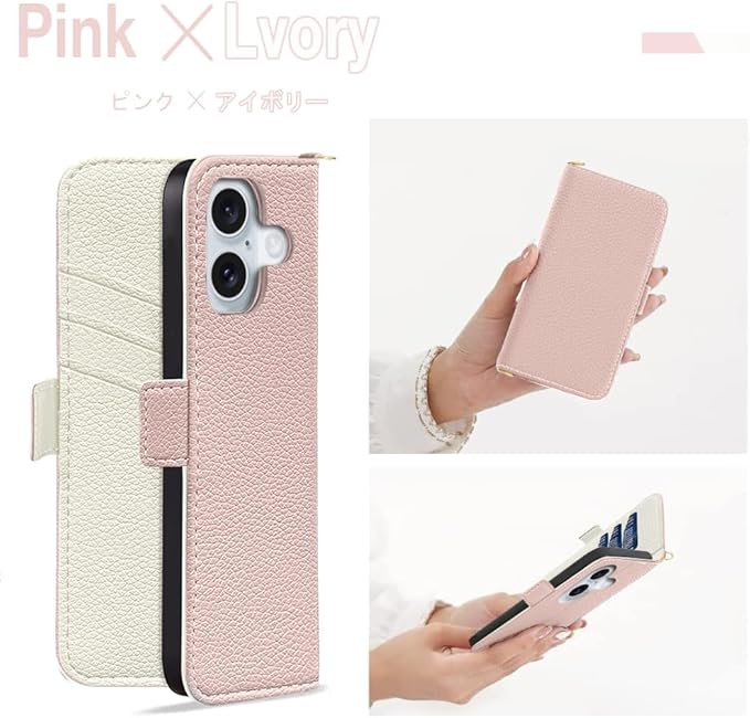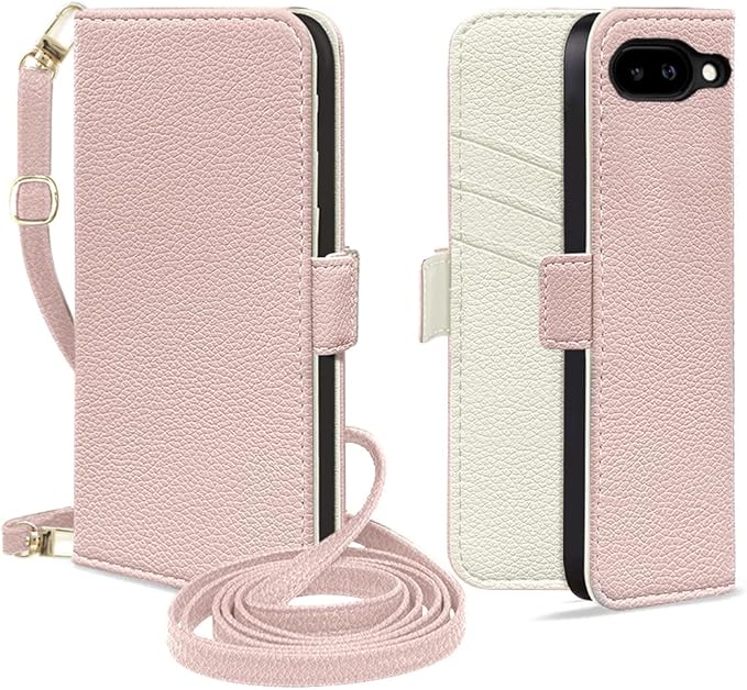 Kahper for Google Pixel 9a ケース 手帳型 ショルダー グーグルピクセル9a ケース 手帳型 可愛い スマホケース Pixel 9a おしゃれ ぐーぐるぴくせる9a カバー 財布型 カードポケット 横置き機能 ピクセル9a 携帯カバー マグネット式 軽量 耐衝撃 高級PUレザー 全面保護 擦り傷防止 耐汚れ 防塵 6.3インチ(ピンク メ アイボリー) | KAZESHOP