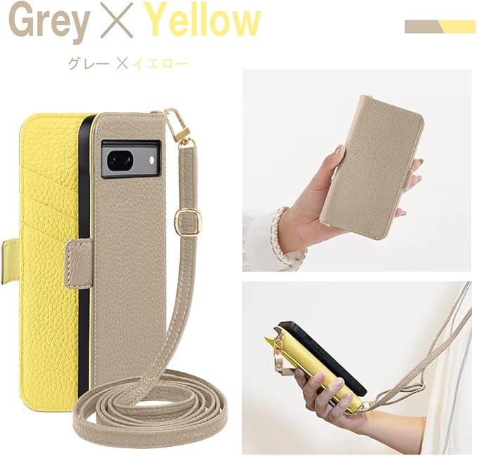 for google pixel 7a ケース 手帳型 グーグルピクセル7a ケース 手帳型 おしゃれ Google Pixel 7a カバー カード収納 スタンド機能 マグネット式 Pixel7a スマホケース 財布型 全面保護 落下防止 軽量 衝撃吸収 googleピクセル7a ケース 高級PUレザー 汗や指紋防止 人気 女性 大人 バイカラー(グレー メ イェロー) | KAZESHOP