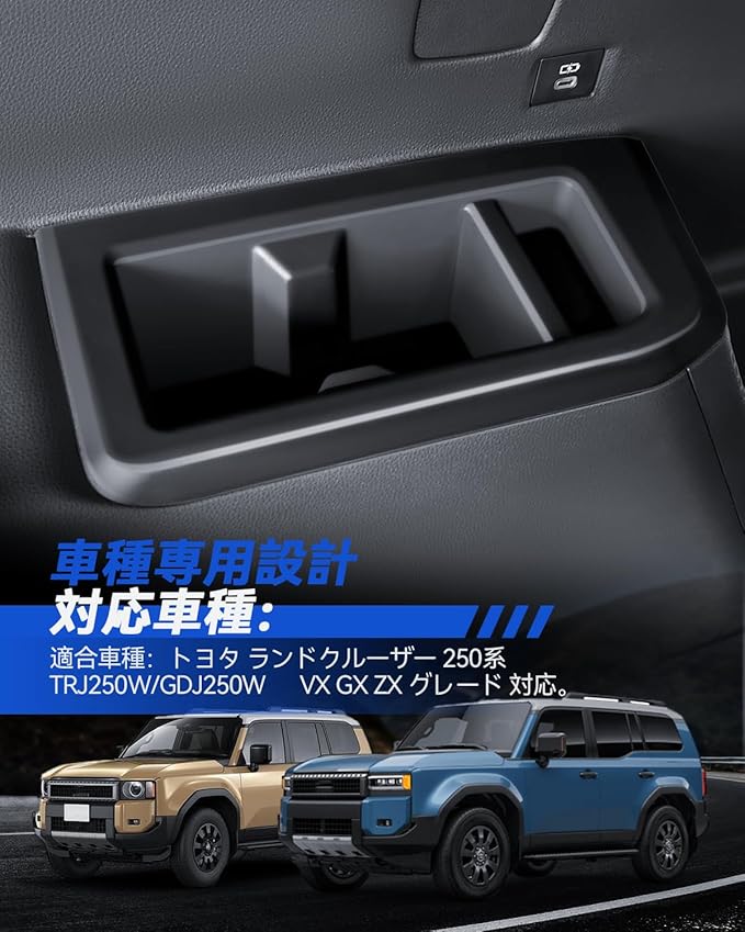 【防滑・防塵で使い勝手抜群】ドリンクや小物をしっかりとホールドするランクル250系 コンソールトレイ 保護カバーで、運転中のカタカタ音や物が動く音を軽減します。滑り止め加工により、車内での物の移動を防ぎ、ドライブ中も安心。整理整頓がしやすく、車内の快適さを保つことに貢献します。