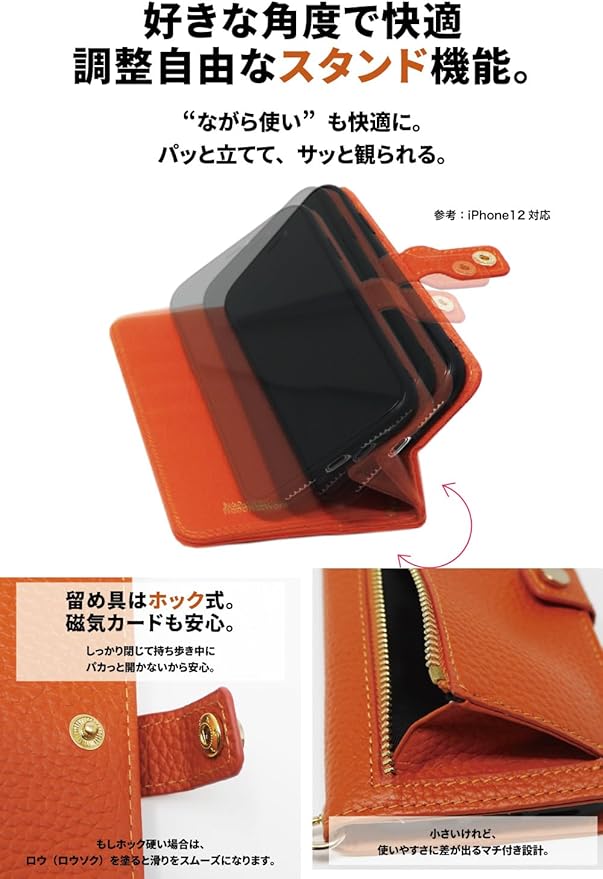 【きめ細やかな手触りのいい本格レザー】は、鼻を近づければ革の香り、しっかりとした感じ、持つたびに手に馴染む使う楽しみ♪ 本格的な高品質の牛革で職人が一つひとつ丁寧に作り上げたオリジナルのケース! スマホケース ブランド「NeedNetwork」の始まりは、世の中には”安っぽいスマホケース”しかなく、それを使うのが嫌で「なければ自分で創ろう!」というオーナーの思いからスタートしました。 よくある手帳型ケースとは”モノ”が違います。 すぐボロボロになる合皮・PUレザーは問題外ですが、本革でも使い込むとなりがちな”ペラペラにくたびれる感じ”なりにくいように仕上げています。