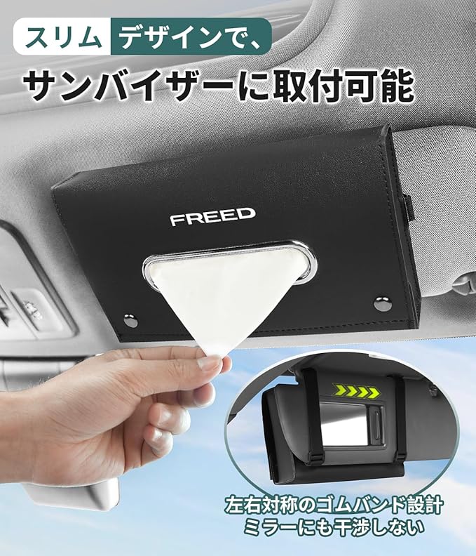 【高級感溢れ 専用ロゴ付き】この 車用ティッシュケース は高級なpuレザーで作られており、生地が厚みがあり、触り心地が快適の同時、型崩れしない構造も施されており、耐久性に優れています。細部までこだわり、FREED専用ロゴ付きに加え、金属製の引き出し口は質感があり、ご愛車の雰囲気と高級感をさらに高めます。【適用車種】新型フリード GB系 GT系 G e:HEV エアー EX クロスター などのグレード