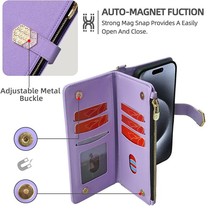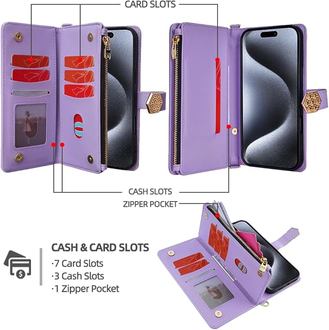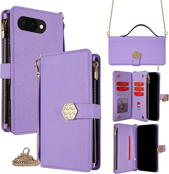 For Google Pixel 9A ケース 手帳型 ショルダー For グーグル ピクセル 9A カバー 財布型 肩がけ 手提げ可能 斜めがけ 高級PUレザー ロングストラップ マグネット式 大容量収納 耐久性 7カード+3お札+1ジッパーポケット 防指紋 女性用 贈り物 COCOCLOUD パープル | KAZESHOP