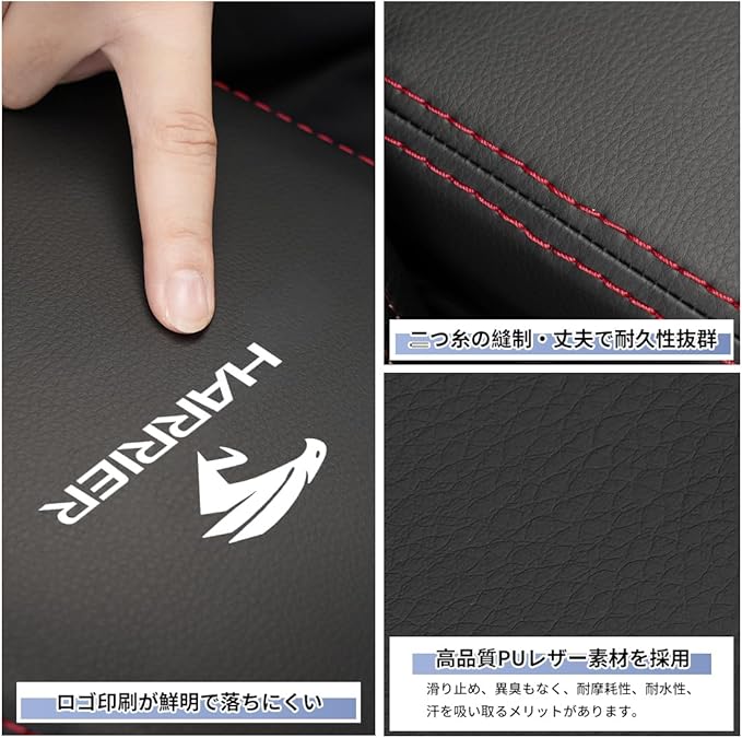 【高品質素材・3色選択可】このアームレストカバーがより良い感触のために高品質のPUレザーを採用し、アームレストを十分に包まれています。そして、弊社のアームレストカバーが異臭もなく、耐摩耗性、耐水性、汗を吸い取る機能があります。二重太い糸の縫製なので、カバーの耐久性が抜群です。車種専用設計のためフィット感良好、 ハリアー エンブレムがあり、車の高級感を損なわなく、車内のインテリアにもなります3つのスタイルからお選びいただけますので、お好みに合わせて、ご愛車の内装の雰囲気とマッチします。