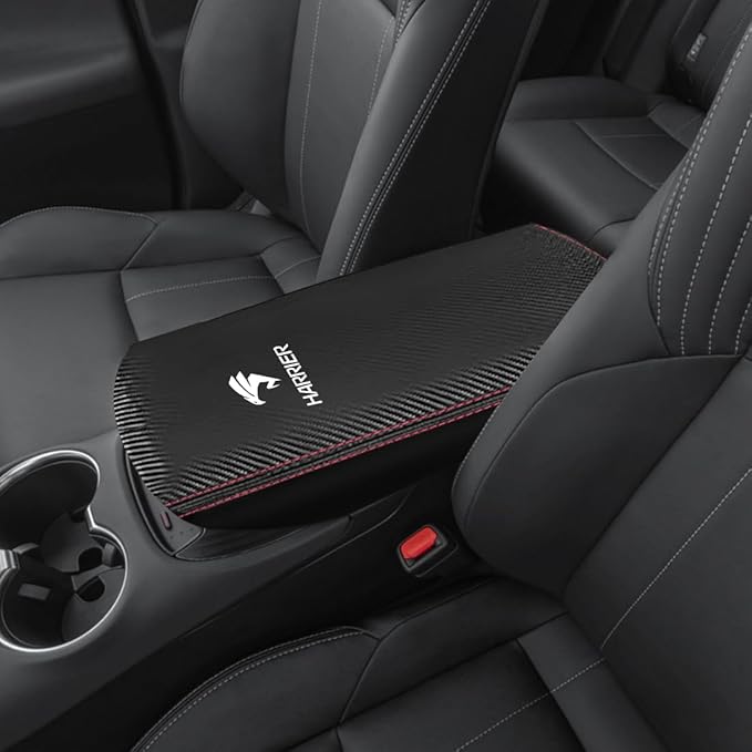 ハリアー 80系 専用 アームレスト カバー 新型 ハリアー 80系 専用設計 20年6月~現行 センター コンソール カバー HARRIER ロゴ コンソールボックス 肘置き 防水 キズや汚れ防止 内装パーツ アクセサリー (カーボン調+レッド糸) | KAZESHOP