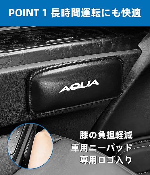 AQUA 車用ロゴ ニーパッド 膝パッド アクア NHP 10系 アクセサリー 運転席 車クッション 疲労軽減 肘置きパッド 滑り止め アームレストカバー 休憩 膝サポート 膝当て 両面テープ PU メモリーコットンコア 通勤 内装パーツ | KAZESHOP