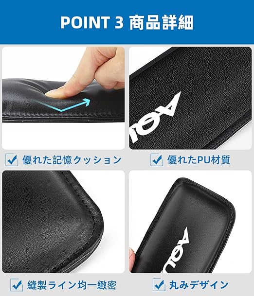 【優れたPU材質】 製品サイズ:18*8*3cm、貼付位置:平滑な表面 表面には優れた質感のPU素材を採用した外観で、頑丈で耐久性に優れ、長時間運転の快適使用が可能です。手触りは繊細で快適、滑らかな表面が膝を傷からしっかり保護します。内部には良い通気性と安定性に優れた高密度低反発力メモリーフォームを採用しており、変形しにくく、長時間使用でへこみが生じても、すぐに元の膝クッション形状に戻れます。