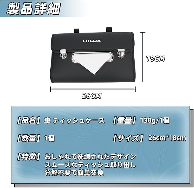 【専用ロゴ】この車用ティッシュケース表面は HILUX 専用ロゴが印刷されており、ご愛車に合わせやすい洗練なデザインが特徴です、車内に高級感を与えます。ハイラックス 車のカスタムパーツおしゃれ。