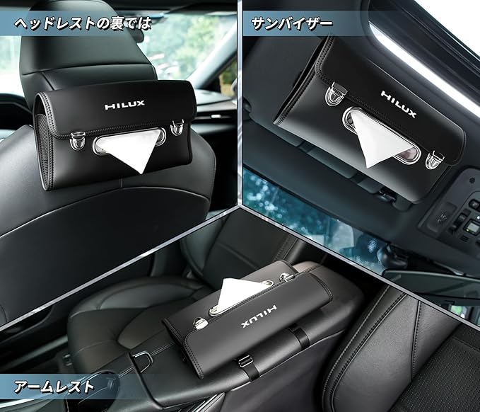 ハイラックス 専用 車 ティッシュケース ティッシュホルダー HILUX ハイラックス カスタムパーツ アクセサリー 内装パーツ ティッシュカバー おしゃれ ヘッドレストの裏では/手すり/サンバイザー取付 カー用品 便利グッズ 車内 1個入り ブラック | KAZESHOP