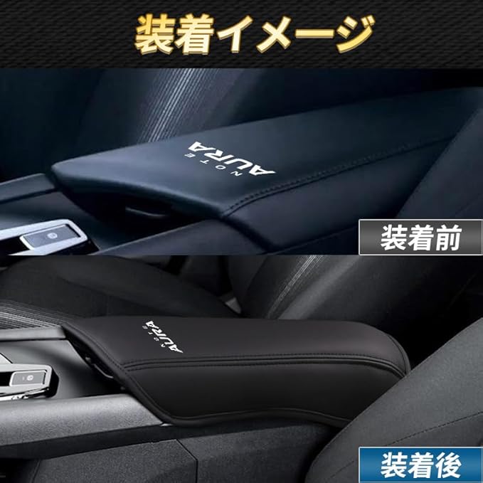 日産 ノート & ノートオーラ パーツ 車用アームレスト カバー E-POWER NOTE E13 NOTE AURA FE13型 カスタムパーツ アクセサリー 汚れ防止 肘掛け 肘置き 肘掛けクッション PUレザー 装着簡単 疲労を軽減 便利グッズ 車種専用設計 (For Note Aura) | KAZESHOP