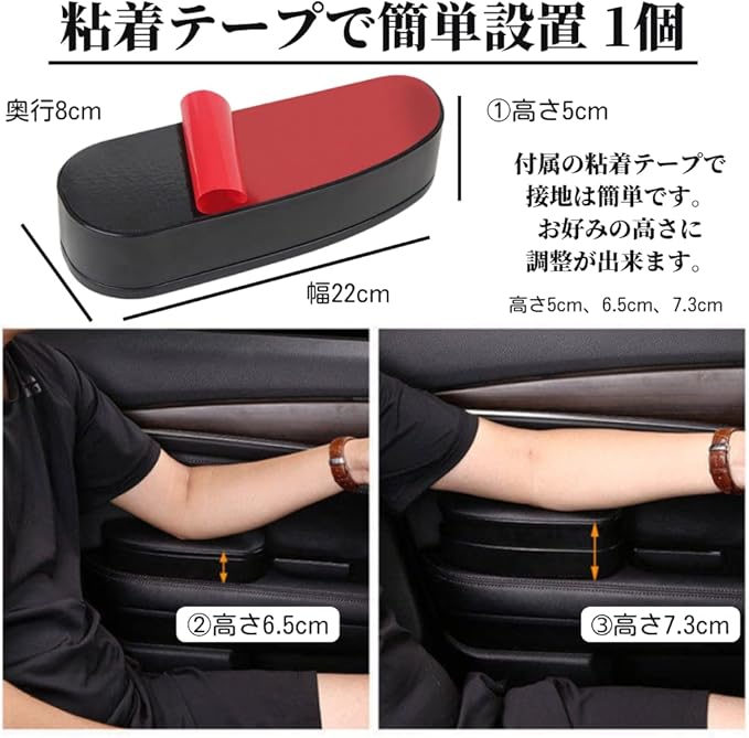 【車用アームレスト】車にドアの下に両面テープで簡単設置出来るアームレスト。3段階の高さ調整が出来肘を安定させ疲労の軽減になります。