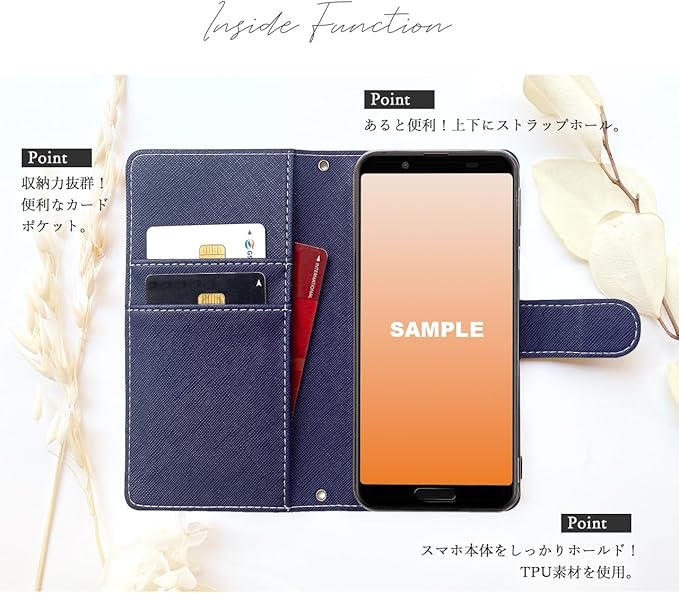 ◎手帳部分と内側ケース部分は接着しておりますが、強くめくったりひっぱると剥がれる場合がございます。内側のケースは黒TPUを使用し、本体をカバーします。電源ボタンや音量ボタンなどは、黒TPUケースの上から押す仕様となっております。カメラ部分などは機種に合わせた開口部が開いております。
