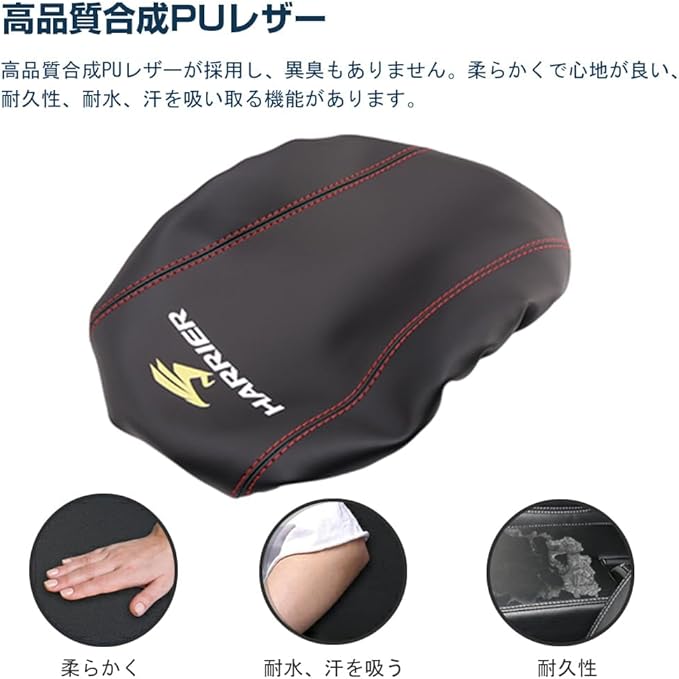 トヨタ ハリアー 80系 専用 レザーアームレストカバー HARRIER センター コンソールボックス カバー 傷 汚れ防止 被せるだけパーツ 内装 カスタム アクセサリー ドレスアップ パーツ (ブラック&レットステッチ) | KAZESHOP