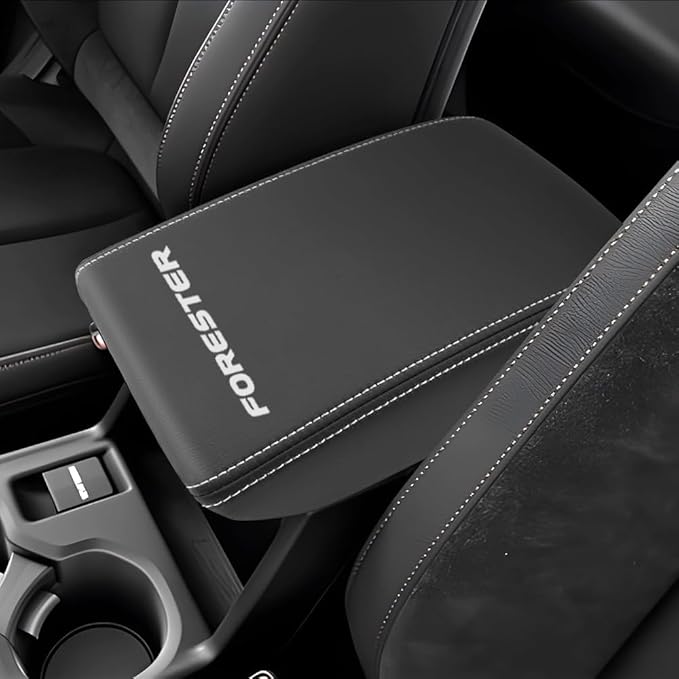 XIKER スバル フォレスター SL系 専用 レザーアームレストカバー FORESTER センター コンソールボックス カバー 傷 汚れ防止 被せるだけパーツ 内装 カスタム アクセサリー ドレスアップ パーツ (ブラック&ホワイトステッチ) | KAZESHOP