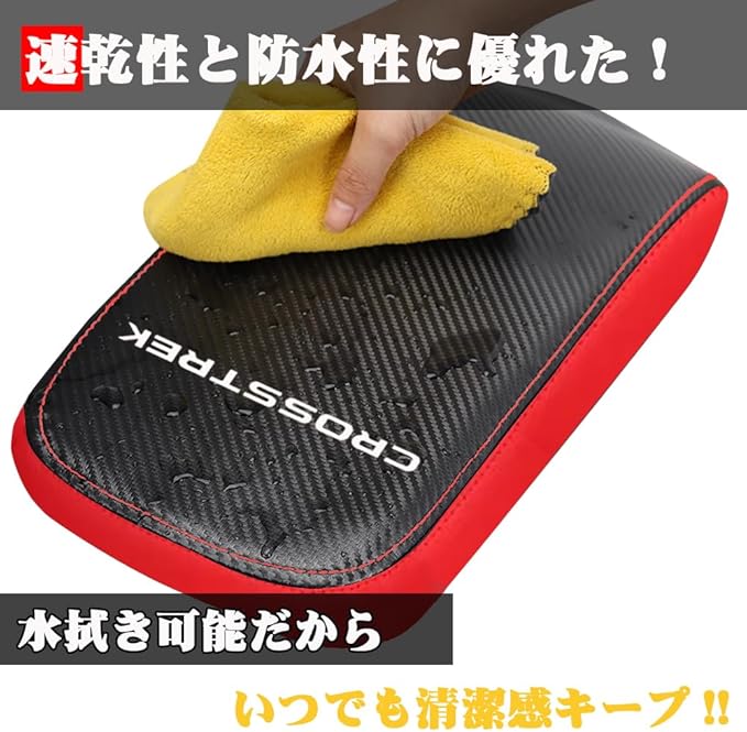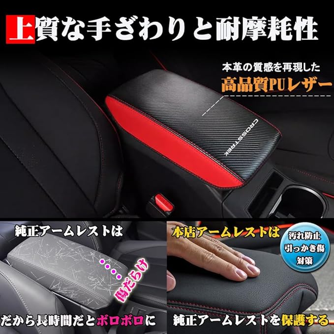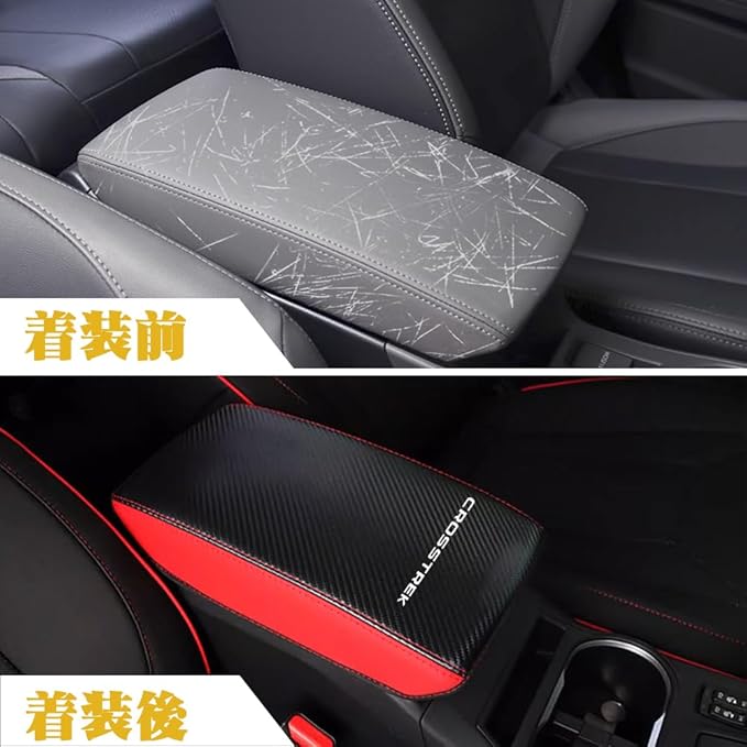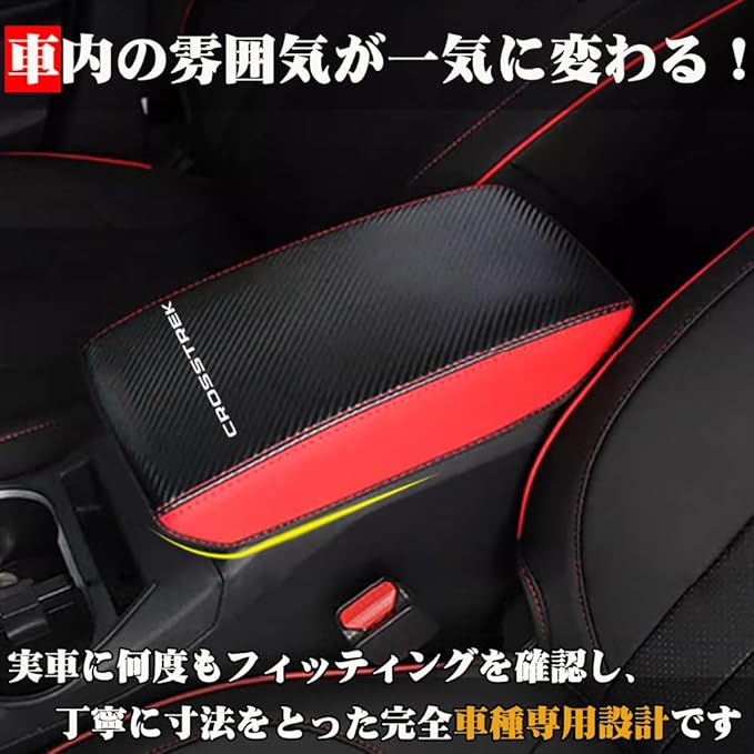 スバル クロストレック GU系 専用 レザーアームレストカバー CROSSTREK センター コンソールボックス カバー 傷 汚れ防止 被せるだけパーツ 内装 カスタム アクセサリー ドレスアップ パーツ (ブラック&レッド) | KAZESHOP