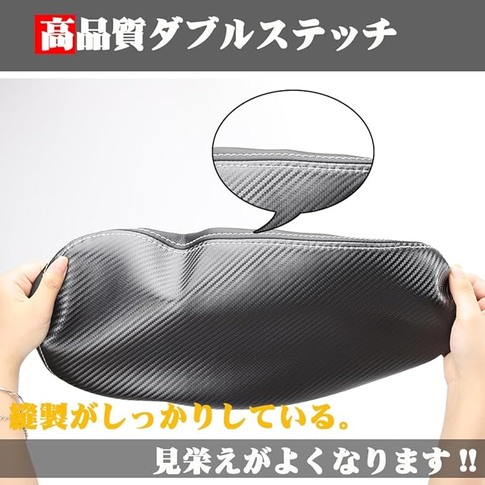 【品質のこだわり】PUレザーが採用しているうえ、丈夫なダブルステッチを使ているので、見た目は美しく、長く使えるようになっております。シンプルなデザインですが、純正パーツと合わせて愛車の高級感を損なわなく、内装の雰囲気と一体化になります。