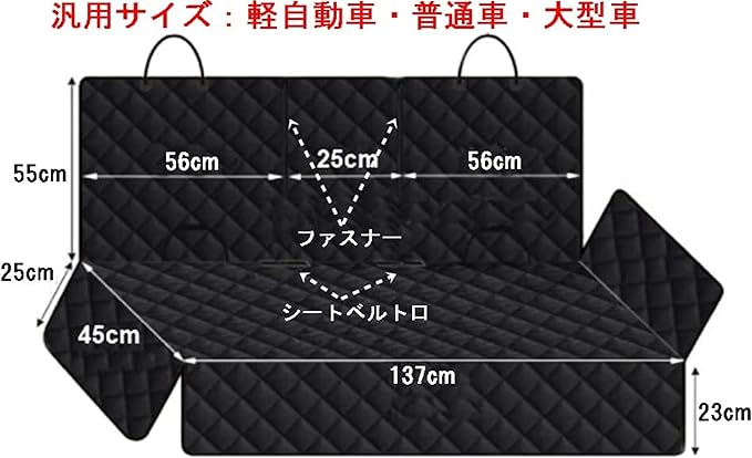 【特徴】〇 汎用サイズ 〇 耐久性・防水性 〇ベンチシート・アームレスト対応 〇 カーシートカバー・トランクシート 〇 チャイルドシート可 〇 新三面厚生地 〇 滑り止め 【色】ブラック