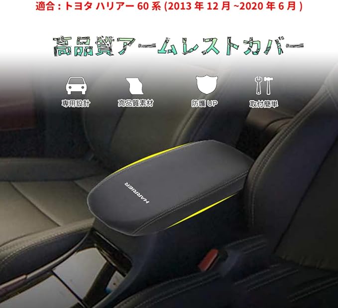 アームレストカバー適用トヨタ ハリアー ZSU60W ZSU65W ASU60W ASU65W 60系(2013年12月~2020年6月~)コンソールボックスカバー 内装 アクセサリー カスタム パーツ カー用品 汚れ防止 傷防止 専用設計 簡単取付(ブラック革(グレーステッチ) | KAZESHOP