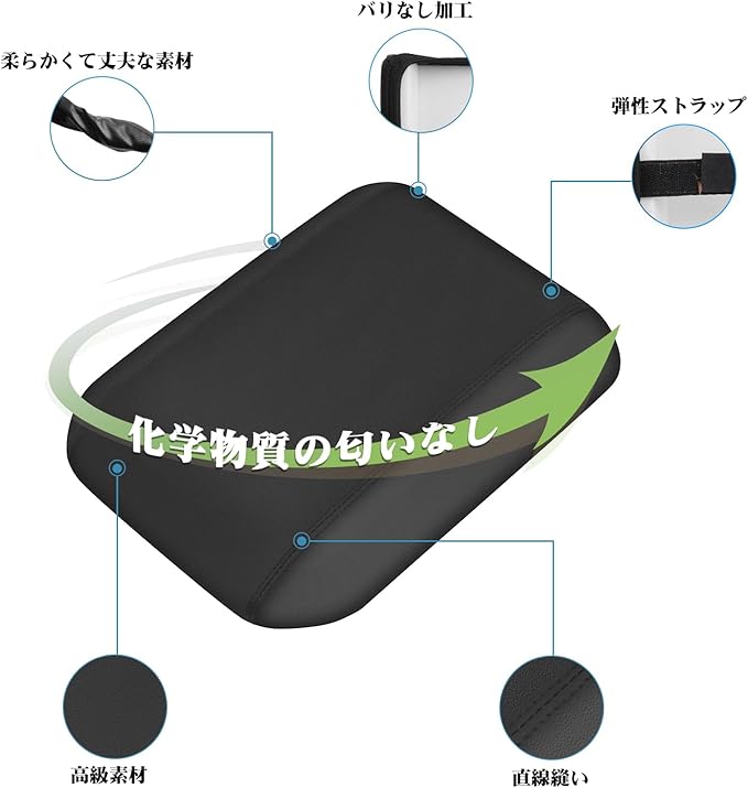 【作用】:取り付けはピッタリでコスパはいい。肘を置いても腕が痛くならず長時間の運転も楽です。そして汚れ防止にもいい製品だと思います。