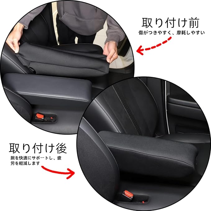 【保護効果&お手入れ簡単】このアームレストボックスカバーを使用すると、長時間の運転中に肘によるアームレストボックスの摩耗を防ぐだけでなく、アームレストボックスカバーを汚れやほこりから保護します。アームレストパッドが汚れた場合は、簡単に取り外してお手入れが簡単です。