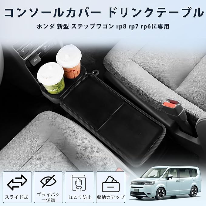 ホンダ 新型テップワゴン スライド式 コンソールカバー ステップワゴン RP系 アームレストカバー エアー スパーダ センターコンソール ドリンクテーブル STEPWGN RP6/RP7/RP8 e:HEV専用 ドリンクホルダー増設 プライバシー保護 防塵 アクセサリー 内装パーツ メーカー直営 | KAZESHOP