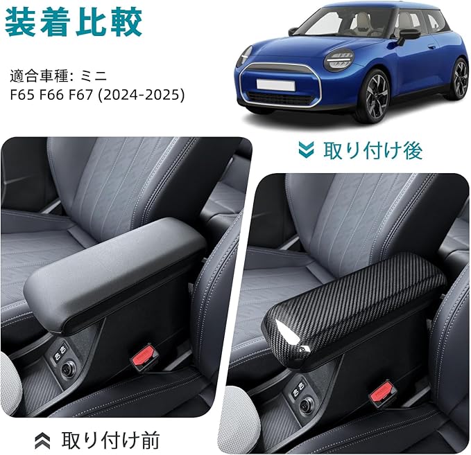 AIRSPEED ミニクーパー F65 F66 F67 MINI Cooper 2024-UP 専用 アクセサリー カーボンファイバー 内装 パーツ カーフロントアームレストボックスカバー カッコいい 汚れ防止 インテリア ドレスアップ 両面テープ付き 車用品テープ(ハードカーボン ブラック) | KAZESHOP