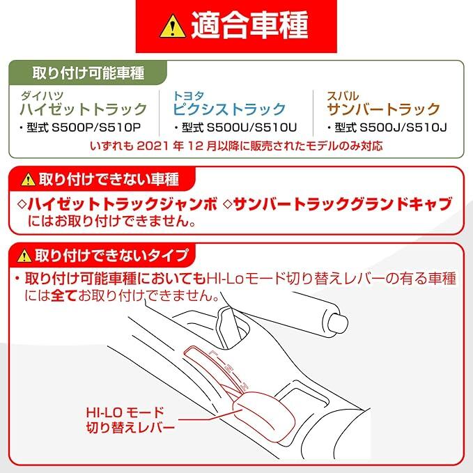 ※(注意)ハイゼットトラックジャンボ・サンバートラックグランドキャブ/Hi-Loモード切り替えレバー車は非対応。