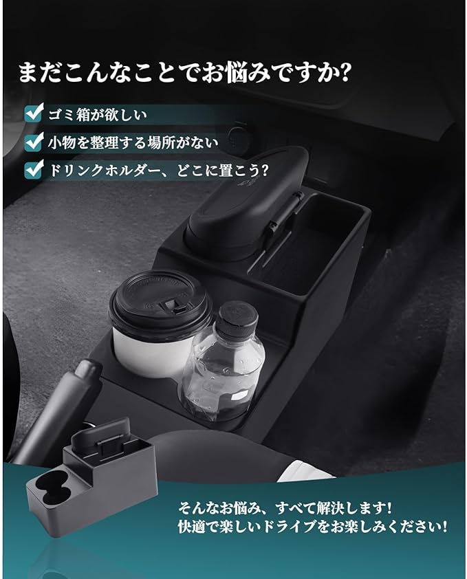 【増設収納トレイ&収納不足を解消・ゴミ箱付き】ミライースにぴったりのセンターコンソールトレイで、センターコンソールのスペースを有効活用し、ドリンク、スマホ、かぎ、カードなどの小物を一時的に置く場合に最適です。さらに、取り外し可能なゴミ箱付きでゴミを捨てる悩みを解決します。非常に実用的なカーアクセサリーです。