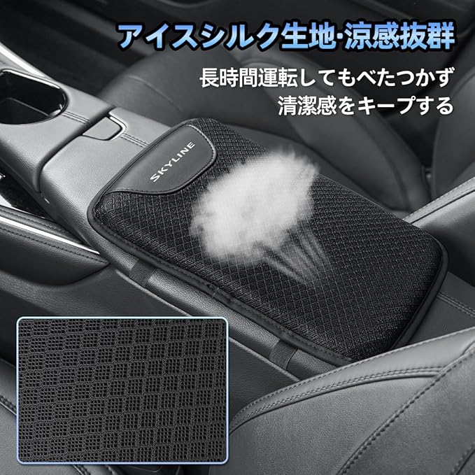 スカイライン 適用 アームレストカバー 車 厚型 保護カバー SKYLINE V37系 V36系 対応 引っかき傷対策 アームレストクッション アイスシルク生地 通気性 カー アームレストパッド 肘置き 疲労減少 コンソールボックスパッド 滑り止め 簡単取付(スカイライン 適用) | KAZESHOP