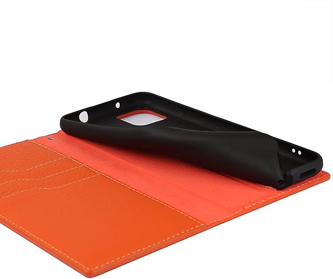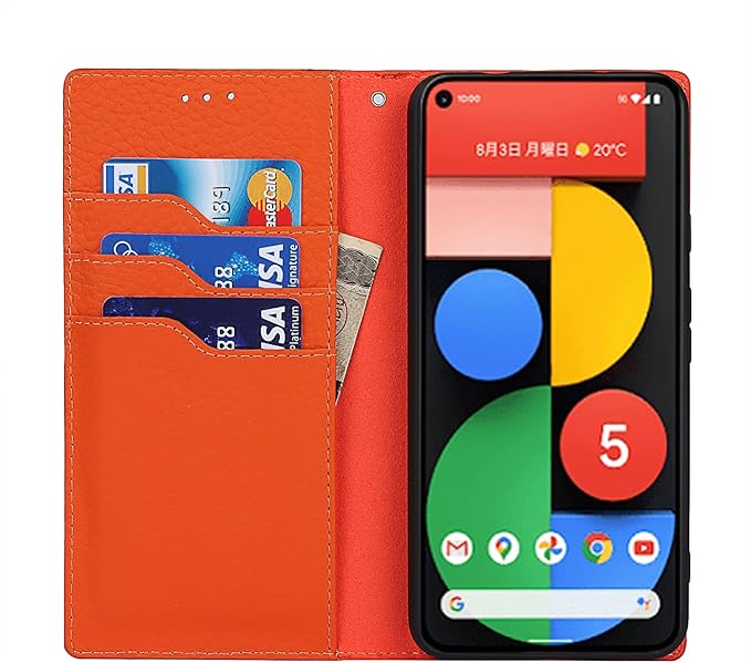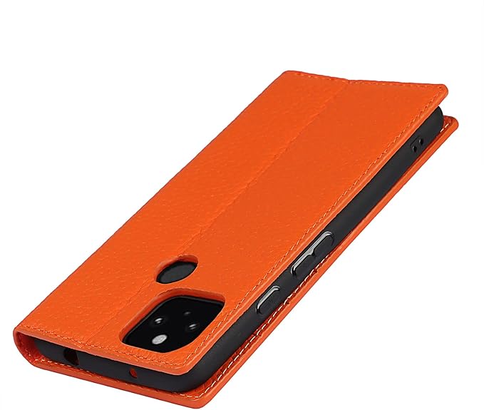 Eastwave for Google Pixel 5A 5G ケース 本革 本革 for pixel5a 5g 手帳型ケース 財布型 カバー 手帳式 本革 柔らかい 本皮 スプラットホール付き スプラット同梱 内蔵マグネットカード収納 横置きスタンド機能 - オレンジ | KAZESHOP