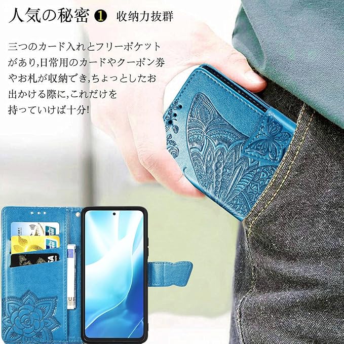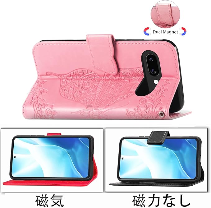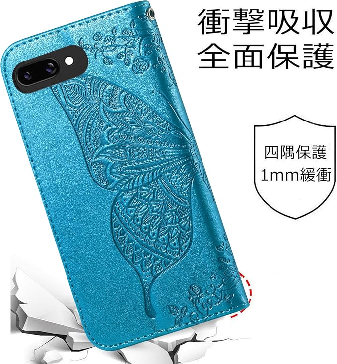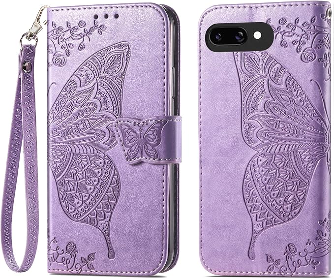 デザイン: 美しい蝶の模様がエンボス加工された高品質PUレザー製手帳型ケース、Google Pixel 9A専用設計で完璧にフィット
