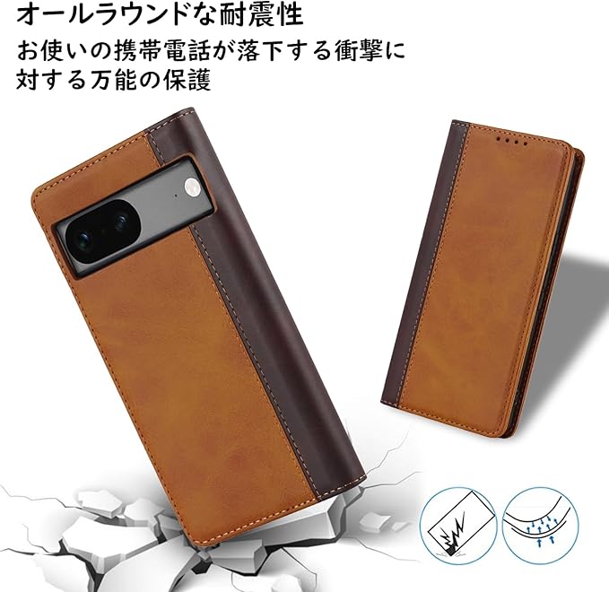 Havaya 対応 Pixel 7a ケース グーグルピクセル7a ケース Google Pixel 7a ケース 手帳型 docomo スマホケース au 耐衝撃 SoftBank カバー カード収納 スタンド機能 フェイクレザー-イエロー+ブラウン | KAZESHOP