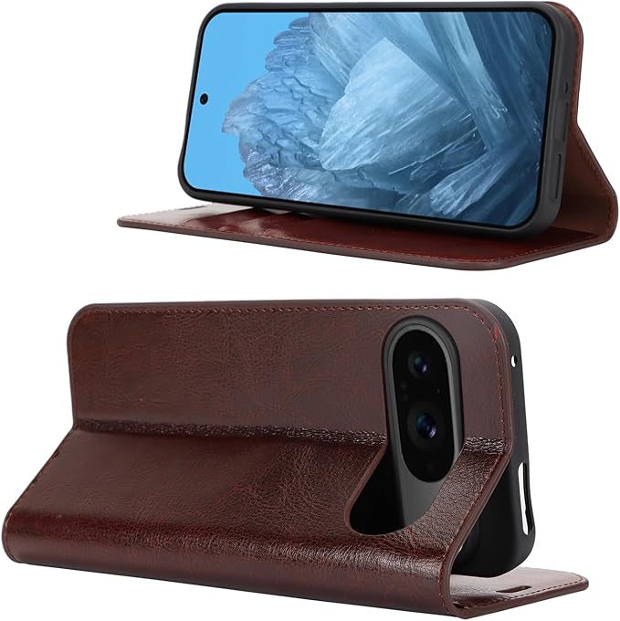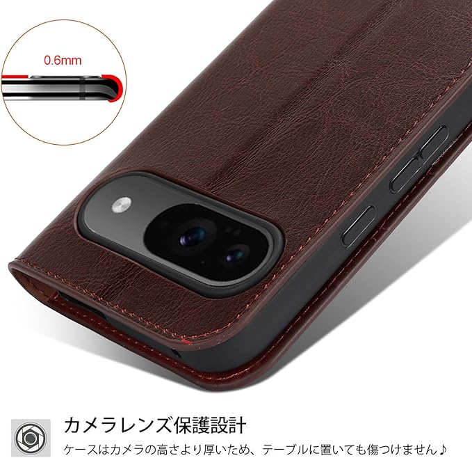 Google Pixel 9 ケース 手帳型 通用 Pixel 9 Pro マグネット無し 耐衝撃 カードケース pixel9 手帳ケース docomo au SIMフリー softbank 対応 ピクセル9 カバー グーグル ピクセル9pro スマホケース ピクセル9プロ case 適用 iCoverCase マグネットなし スタンド 光沢加工 牛革 レザー 財布型 カード入れ ダークブラウン | KAZESHOP