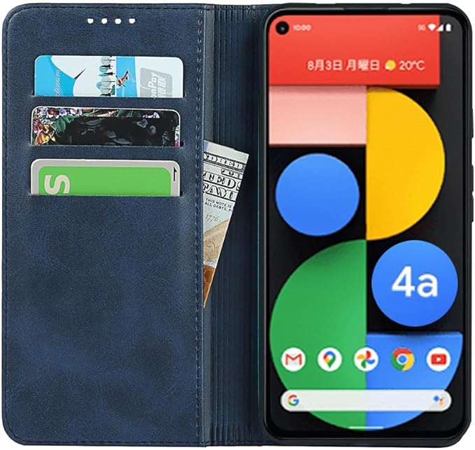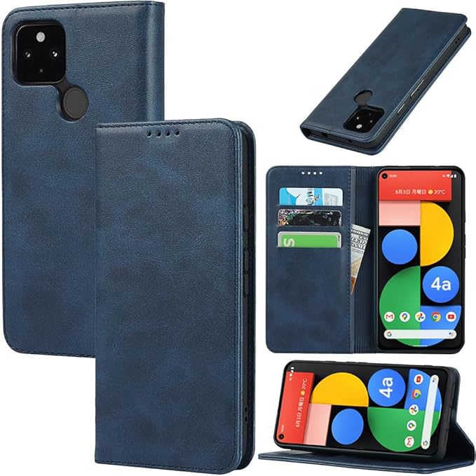 対応 Google pixel 4a 5g ケース 手帳型 スマホケース グーグルピクセル4a 5g カバー 手帳型 カードスロット、キックスタンド レザー(ネイビー)