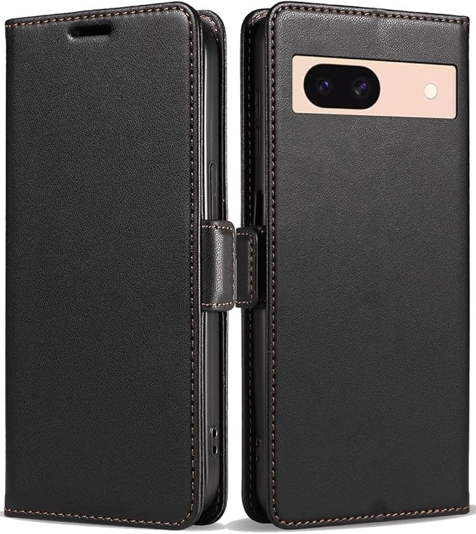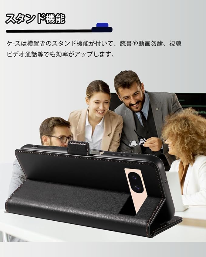【Junzc】グーグルピクセル8a ケース 手帳型 google pixel 8a ケース 手帳型 人気 耐衝撃 落下防止 おしゃれ スマホ 落下防止 サイドマグネットワイヤレス充電対応 スタンド機能付 本革高級おしゃれレザー シンプル (ブラック) | KAZESHOP